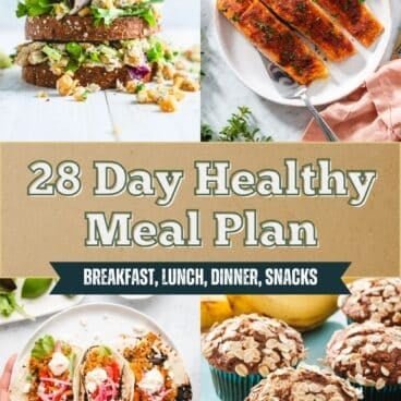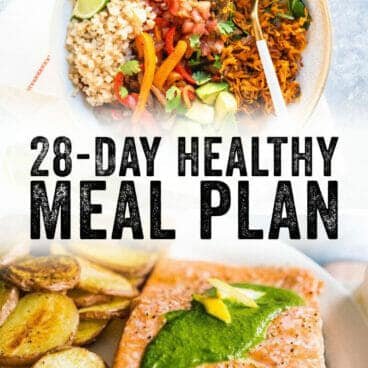 It’s possible this healthy weekly meal plan might not work for you–and that’s ok! This meal plan might provide too much flexibility for you and not motivate you to make the recipes. Or, you might not like the style of these recipes. (If you eat a vegetarian or vegan diet, you’ll want to use our 28 Day Vegetarian Meal Plan and 28 Day Vegan Meal Plan). We know healthy meal plans are not for everyone, but this is an outline of how Alex and I cook on a weekly basis.