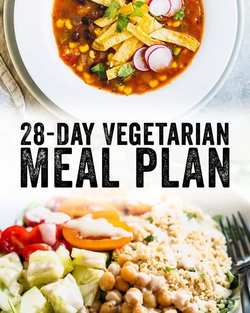 Looking for a vegetarian weekly meal plan? Here’s a 28 day vegetarian meal plan with planning ideas and a meal planning calendar with food to cook.