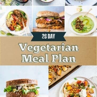 This vegetarian meal plan is right for you if you eat vegetarian! The recipes in this vegetarian meal plan include vegetarian and vegan recipes. For a fully vegan meal plan, head to 28 Day Vegan Meal Plan or Plant Based Diet Meal Plan. If you also eat fish, go to our Healthy Meal Plan, Mediterranean Diet Meal Plan or Pescatarian Meal Plan.
