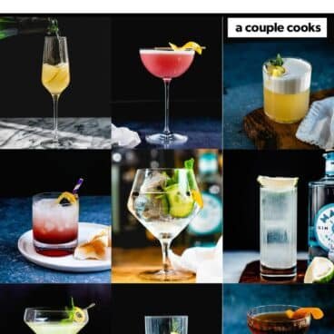 Pre-squeeze citrus juices and prepare simple syrups in advance. See the notes in the “Make Ahead Tips” section above. Make sure to assemble and serve cocktails right before drinking for the freshest flavors and perfect carbonation if using sparkling ingredients.