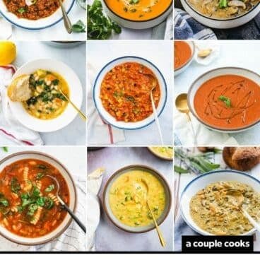 Minestrone soup is an Italian recipe designed for using up any veggies you had on hand. This classic soup is full of chunky vegetables, white beans, and pasta in a tomato-y broth. Serve it with basil pesto (or vegan pesto) and it’s called Minestrone alla genovese. Got an Instant Pot? Try Instant Pot Minestrone.