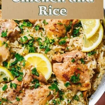 This one pot chicken and rice recipe is an easy dinner with tender chicken thighs and fluffy rice, topped with a fresh lemon parsley gremolata. It’s a cozy, flavorful weeknight dinner!
