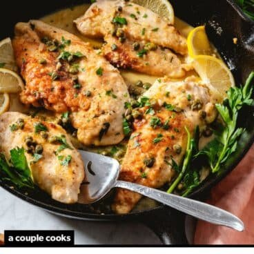 The first time I made chicken piccata at home, I couldn’t believe how simple it was to make (despite the fancy name that always intimidated me). It’s just chicken cutlets pan-fried and then bathed in a bright lemon-butter sauce with briny capers. Alex took one bite and immediately asked why we had waited this long to try it!
