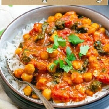 This chickpea curry is the ultimate healthy and easy weeknight dinner! It’s done in 20 minutes, totally plant based, and full of flavor.