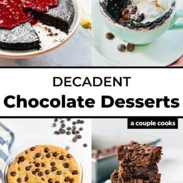 Are you a chocolate lover? Here at A Couple Cooks, we adore chocolate. Though we’re all about healthy eating, there’s always room for a little treat. So here are our favorite chocolate desserts for chocoholics!