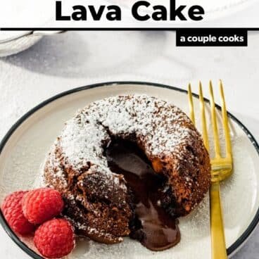 Can you make lava cakes for two? You bet! This recipe is easy to make as a half recipe. Simply divide all the quantities below in half: we’ve formulated it to work neatly as a half recipe. It’s the perfect dessert to end a meal for two, like Valentine’s Day or a romantic dinner!