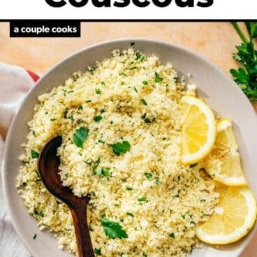 Now for the fun part: how to serve couscous! This couscous recipe is for a basic side dish, flavored with lemon and parsley. It goes with just about anything: because it takes just 10 minutes, we find ourselves making it often. Here are a few ways to flavor and serve it: