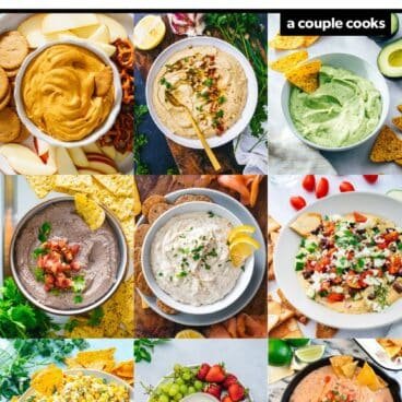 Here are all our best easy dip recipes, from party favorites to 5-minute recipes you can whip up when a hunger craving strikes. There’s often a healthy spin, keeping these recipes fresh and centered on whole foods. Let’s get to the recipes, shall we?