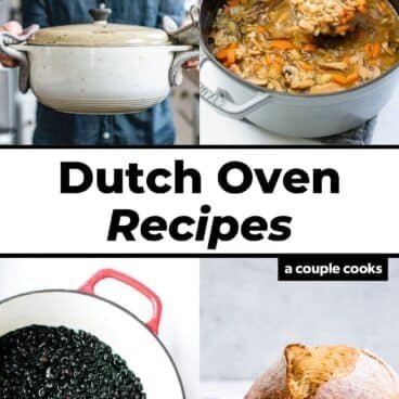 Do you have a Dutch oven? We asked for this heavy-duty cooking pot as a Christmas gift one year, and the rest is history! For years we’ve been using it to make bread, soups and stews, cook dried beans, and more. There are so many easy Dutch oven recipes, it’s hard to know where to start. Here are all our favorites: then scroll down to learn more about Dutch ovens and which we use.