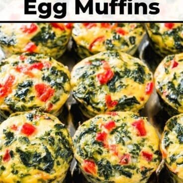 This egg muffin recipe is a spin on our Crustless Spinach Quiche. So if you prefer, you can make this recipe in a pie pan and slice into wedges. Simply bake it for 25 to 30 minutes until puffed and golden. Head to the linked recipe for more details!