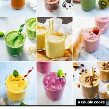 I’ve spent years testing fruit smoothie recipes with every combination I could dream up. Here are all my favorite healthy fruit smoothie recipes that have been tried and tested by me and Alex (and our kids)! Each one follows a basic formula, but I’ve customized each to optimize the flavor for each fruit.