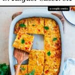 Here’s a deliciously comforting recipe that makes your kitchen smell like a cozy diner: Hashbrown Breakfast Casserole! Don’t let the name fool you: this tasty number works for breakfast, brunch, or a tasty vegetarian dinner. It works cold, room temp or warm, so you can easily make it ahead. And leftovers stay good for days! It’s beautifully hearty, pairing cheesy hash browns with chili powder, garlic powder and cumin for massive savory flavor. Because it’s easy to make ahead, it’s super unfussy and low maintenance. Thank you, hashbrown casserole!