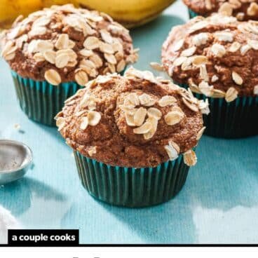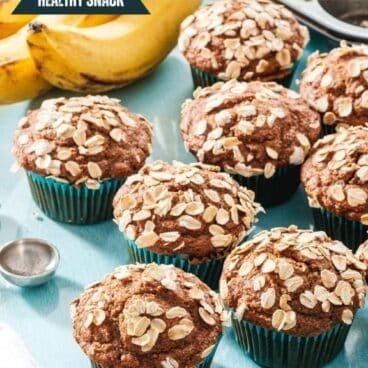 *Note: The amount of muffins can depend on the size of the bananas and the type of oats, and it’s a forgiving recipe (it even works with 2 large bananas). With large bananas and rolled oats, we typically get 9 muffins. We’ve had readers get 10 or even up to 12. The 30 minute bake time typically works for any amount of muffins, but you may want to check them at 25 minutes if you’re baking 10 to 12 muffins.