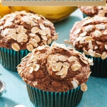 These healthy banana muffins with oatmeal are made in a blender with simple ingredients and no flour required. Perfect for using up ripe bananas as a healthy breakfast or snack that the whole family will love.