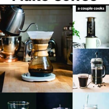 Over here at A Couple Cooks, we are unashamedly coffee obsessed. It’s not just about caffeine. It’s that cozy feeling when you’re holding a warm, fragrant cup and embrace the promise of a new day. Since research seems to indicate that drinking coffee is A-OK (as long as you’re not overdoing it), we’re passionate about sharing the love of a great cup of joe. Here’s how to make coffee at home: 6 different ways!