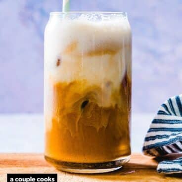 For the last two methods, it’s easiest to use more milk than the recipe calls for because it froths better with a larger quantity. You can save it to make more iced lattes. And that’s it! Let us know if you make this iced latte in the comments below.