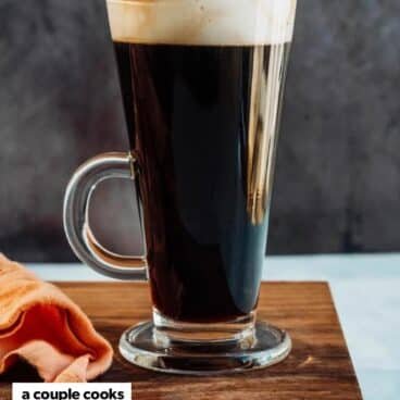 You can serve your Irish coffee in whatever glass you like. But it’s most fun to drink it in Irish coffee mugs! Here are the Irish coffee mugs we recommend: they’re sleek and are exactly the right size to fit the drink recipe. You can also use them for all of the variations below.