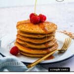 This oatmeal pancake recipe is vegetarian and gluten-free. For vegan, go to Vegan Pancakes instead.