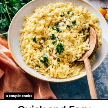 Orzo is a small, rice-shaped pasta that cooks incredibly fast. Within 10 minutes, this orzo recipe tastes comforting and nostalgic, pairing the tender grains with butter and a hint of lemon. It’s so tasty, and it pairs with everything from chicken to shrimp to vegetarian mains. It’s one for the regular rotation!