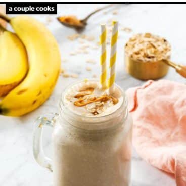 As authors of over 50 smoothie recipes, we’ve slurped up just about every type. But here’s a recipe that stands out as one of our top favorite ever: this peanut butter banana smoothie! This one tastes like a milkshake but it’s made of wholesome ingredients like banana, peanut butter and oats. Whiz it up with frozen bananas and it makes a thick and creamy, sweet puree that will have you professing your undying love! Our family is head over heels about this one, and it’s the perfect breakfast or wholesome snack.