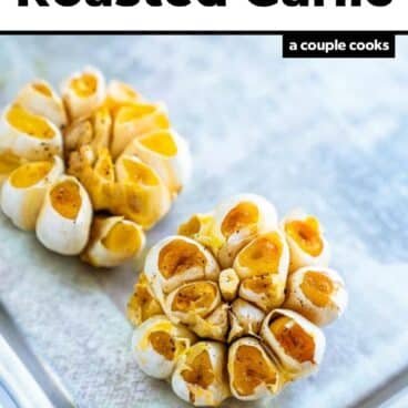 Our roasted garlic recipe below says 2 to 3 garlic heads. But you can roast many more heads at once! Just use 2 to 3 garlic heads per foil packet. You can roast several packets at once: 3 to 4, or whatever fits your oven. Roasting many packets at once can affect the bake time since there’s more in the oven, so adjust as necessary (you may need to bake longer).