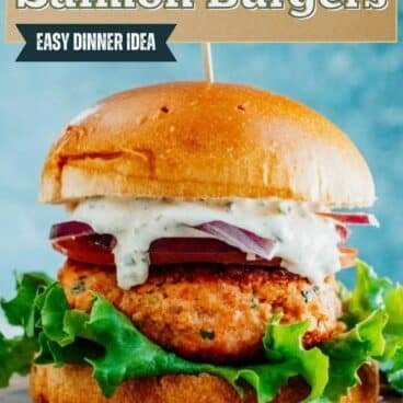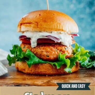 Salmon burgers are a great healthy alterative to red meat. Or if you’re like us, they’re great for a pescatarian diet! We’d resigned ourselves to veggie burgers forever, until this salmon burger came along. Here’s what to know about making this salmon burger recipe: