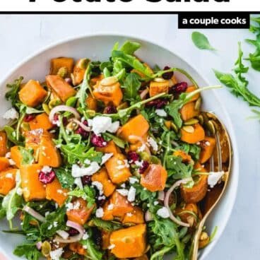 Let us know if you try this sweet potato salad: it’s one of our favorite new recipes and everyone goes crazy for it when we make it! It would be perfect for serving: