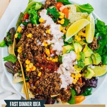 Here’s the tastiest taco salad recipe: a healthy and easy dinner everyone loves — and customizable for any diet! Don’t miss this hack for a quick salad dressing.