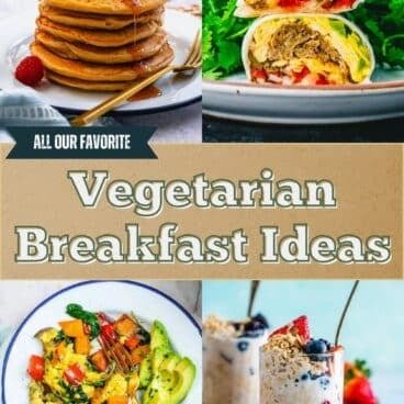 As the author of a vegetarian cookbook, here are all my favorite vegetarian breakfast ideas to start the day! Many of the recipes are also vegan, and they range in effort level based on your level of morning energy. (You can also reference my list of 20 Mediterranean Diet Breakfast Recipes for more ideas!)