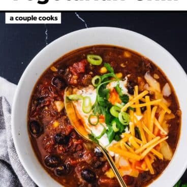 As a cookbook author who specializes in vegetarian and vegan recipes, I’ve made my share of sub-par meatless chili recipes. Finally, I hit upon my favorite formula! This chili has fire roasted tomatoes for smokiness, two types of beans, quinoa, and a few secret ingredients that create a savory depth that feels satisfying even though it’s totally plant-based.