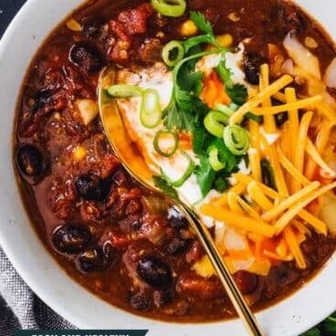 This chili was delicious and thick! I made a double batch for family dinner along, paired with your Greek yogurt cornbread muffins!!! So good!!