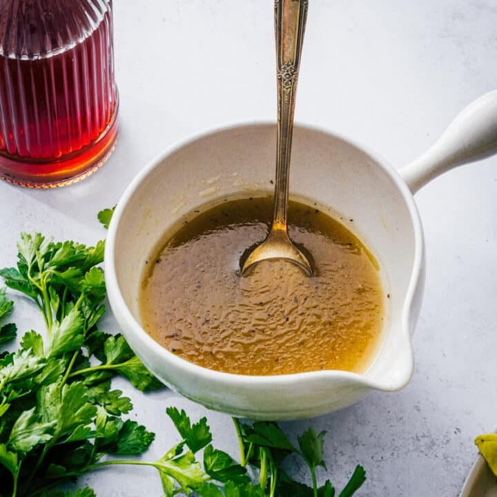 This easy vinaigrette recipe takes just 5 minutes to make with pantry ingredients! The zingy flavor makes it a go-to for any salad.