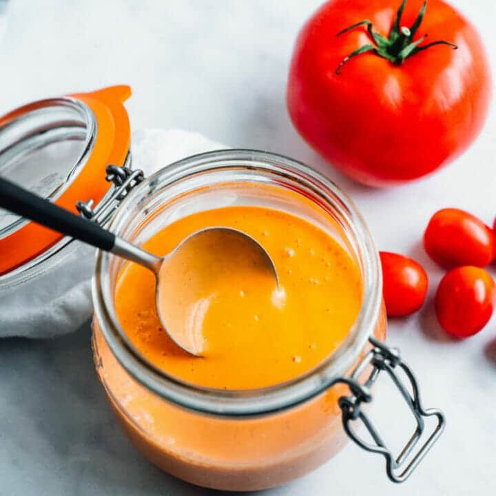 However, we tend to store homemade vinaigrette in the refrigerator: just in case! It stores beautifully for up to 2 weeks. Keep in mind that the dressing solidifies when cold, so bring it to room temperature before serving.
